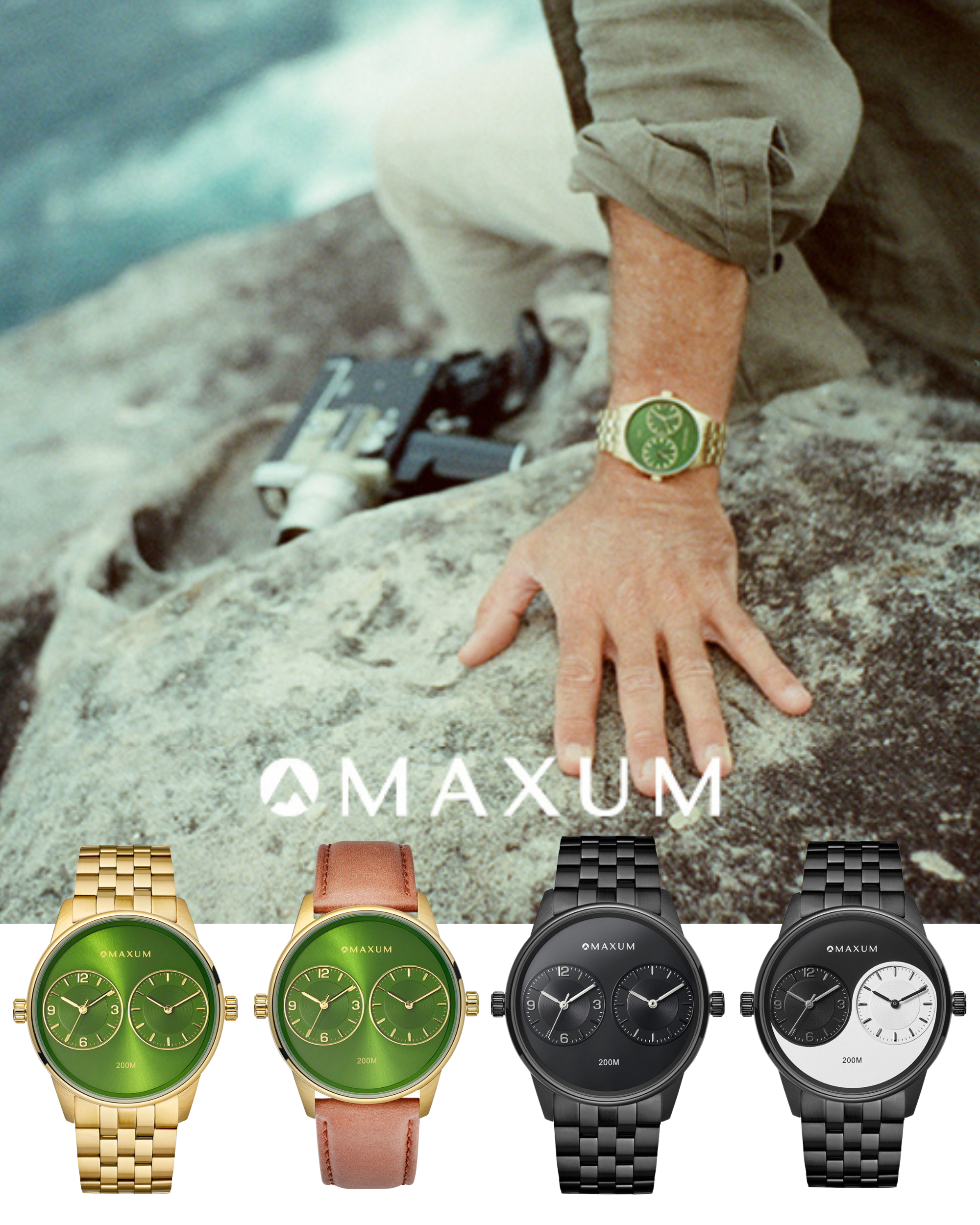 Maxum watches are built to handle life’s adventures, from casual splashes to water sports like surfing. Our water resistance ratings of 100m and 200M are suitable for water sports including swimming and snorkelling.