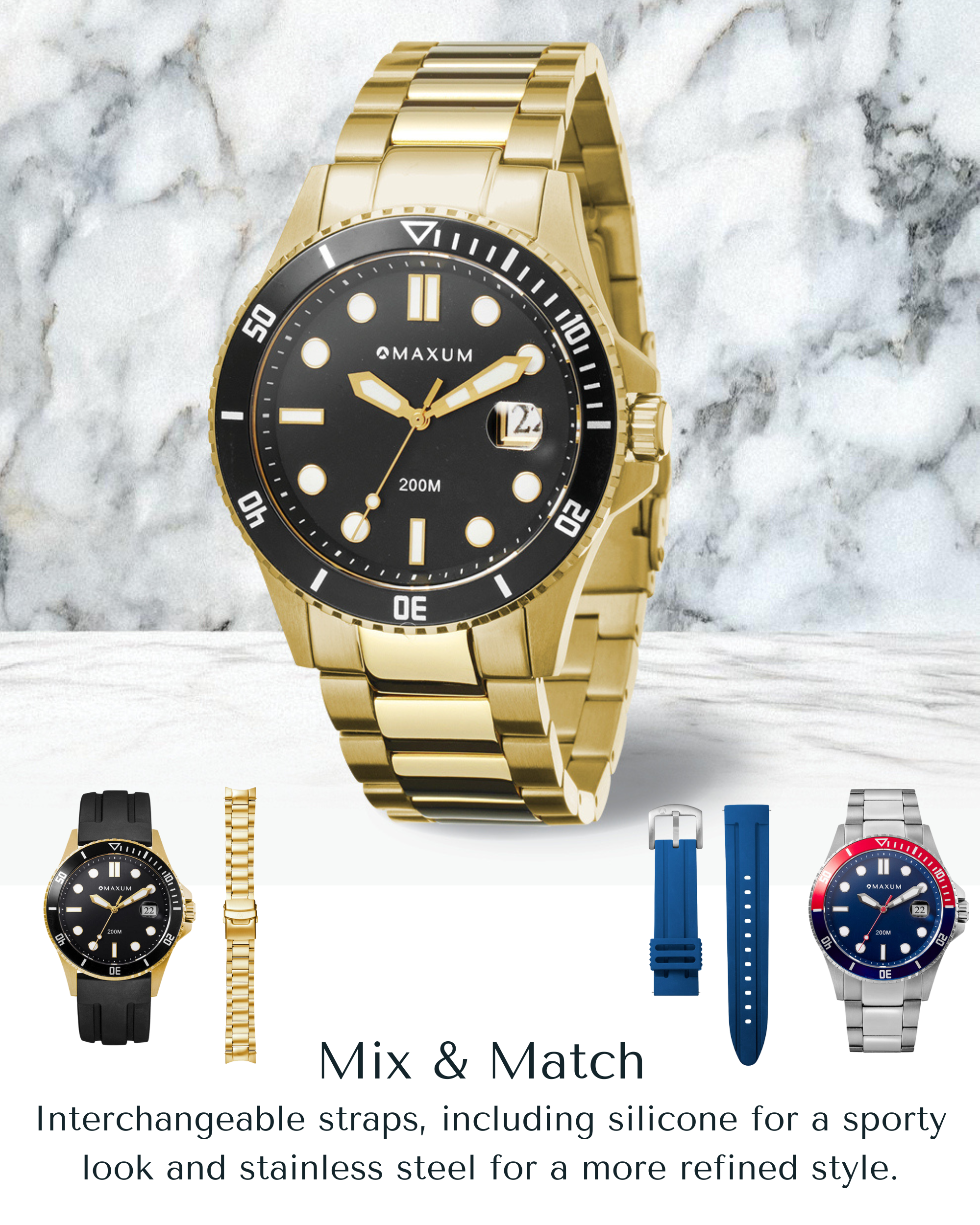 Yes! Many Maxum watches feature interchangeable straps, including silicone for a sporty look and stainless steel for a more refined style.